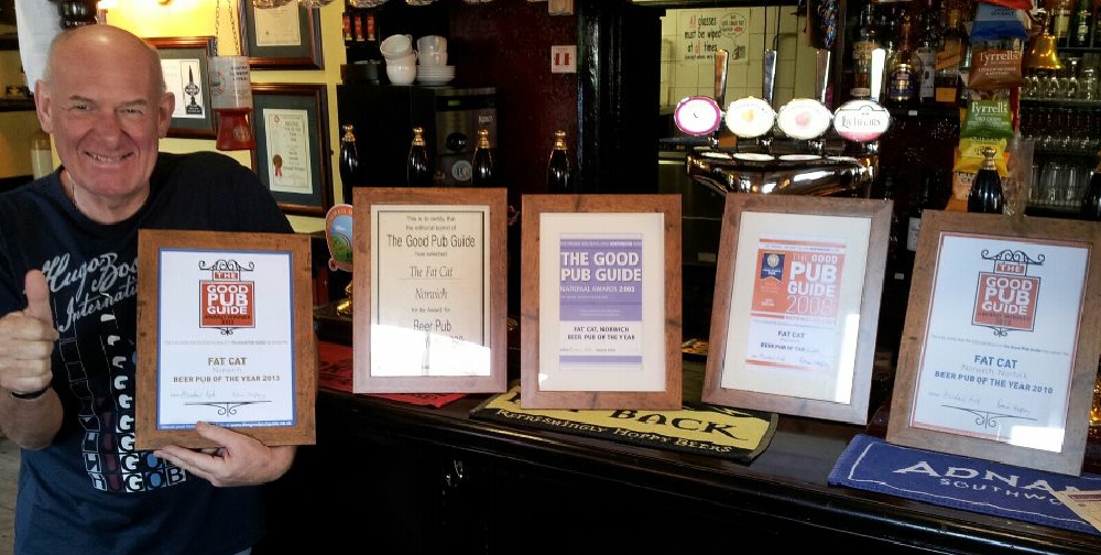 The Free House National Pub of the Year 1998 and 2004 Fat Cat Good Pub Guide Beer Pub of the Year 1998, 2003, 2008, 2010,  2013, 2016, 2017, 2018 2019 & 2020